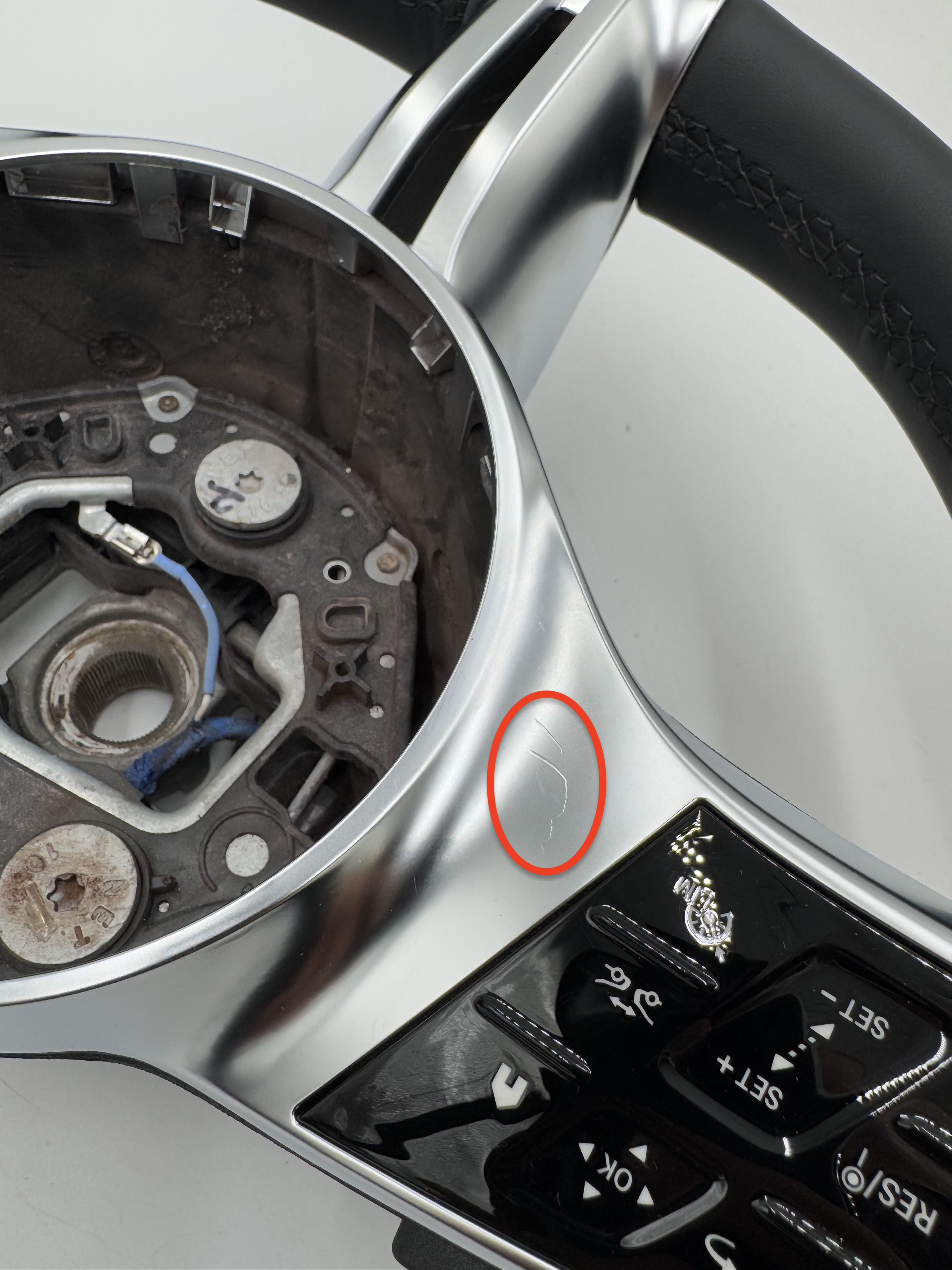 KIEROWNICA W BARDZO DOBRYM STANIE, NA ZDJĘCIU ZAZNACZONA MAŁA RYSA NA DEKORZE , SKÓRA BEZ WAD