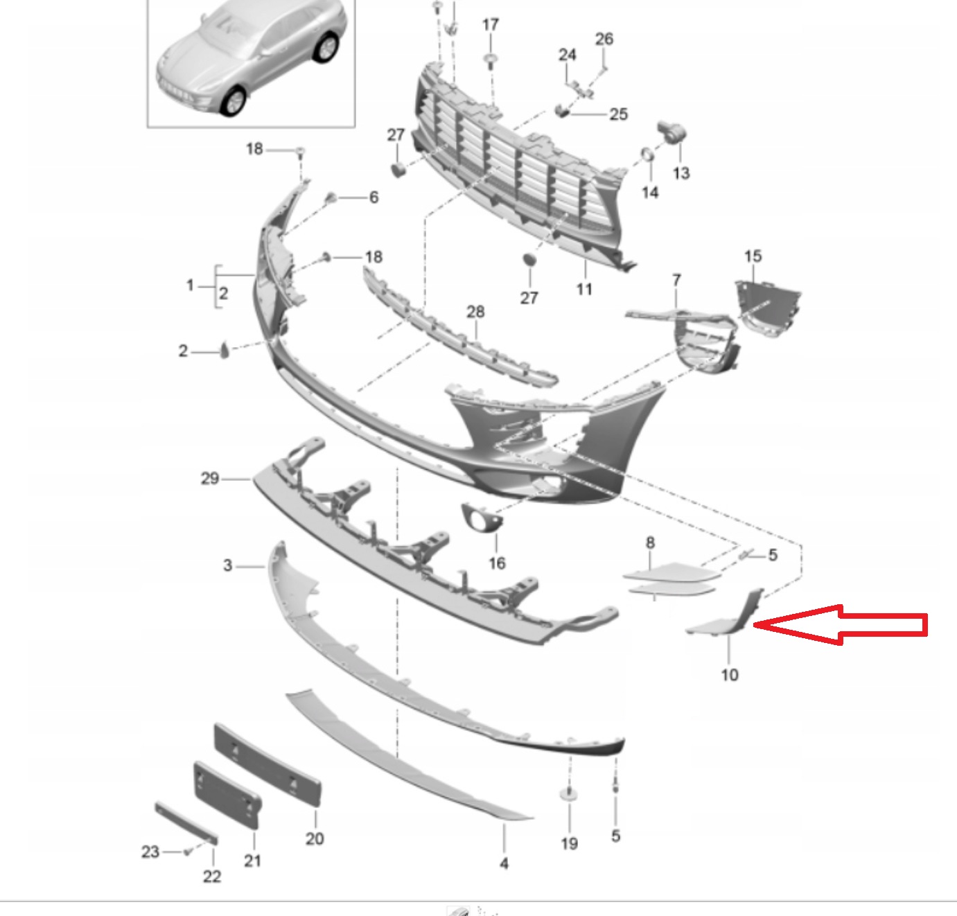 Atrapa zderzaka PORSCHE MACAN 95B 15-18r (95B807683H, 95B807683H1E0)
