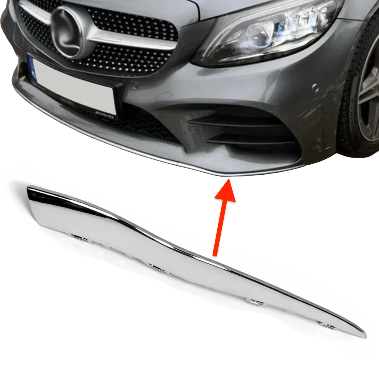 PRZEDMIOTEM OGŁOSZENIA JEST LEWA LISTWA OZDOBNA ZDERZAKA PRZEDNIEGO, DO SAMOCHODU MERCEDES-BENZ C-KLASA W205 AMG LIFT