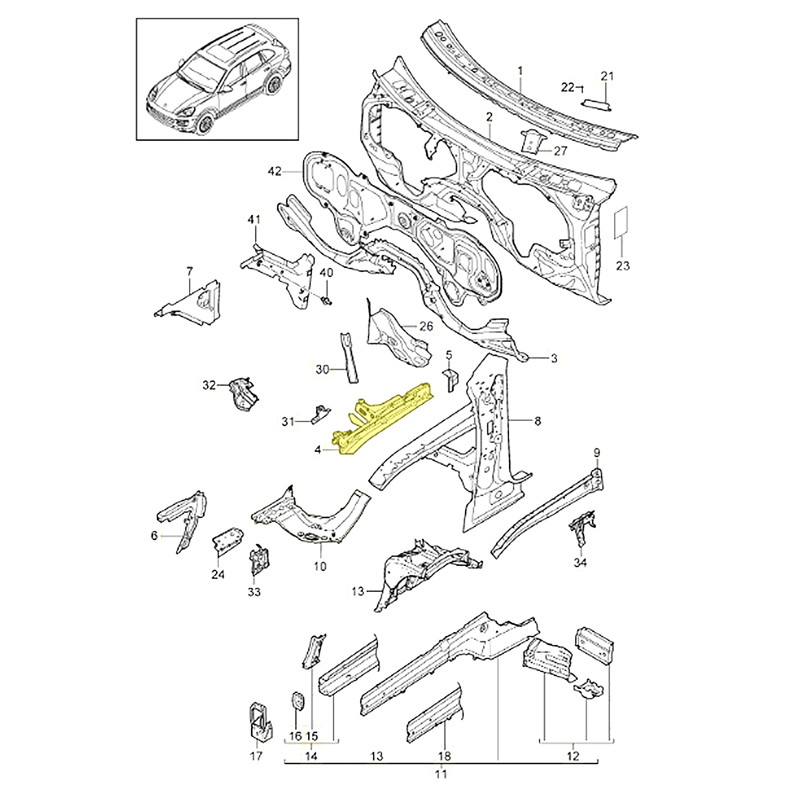 Mocowanie błotnika PORSCHE CAYENNE FL 14-18r LEWE wewnętrzne (95850157100, 7P5806563, 95850157100GRV)